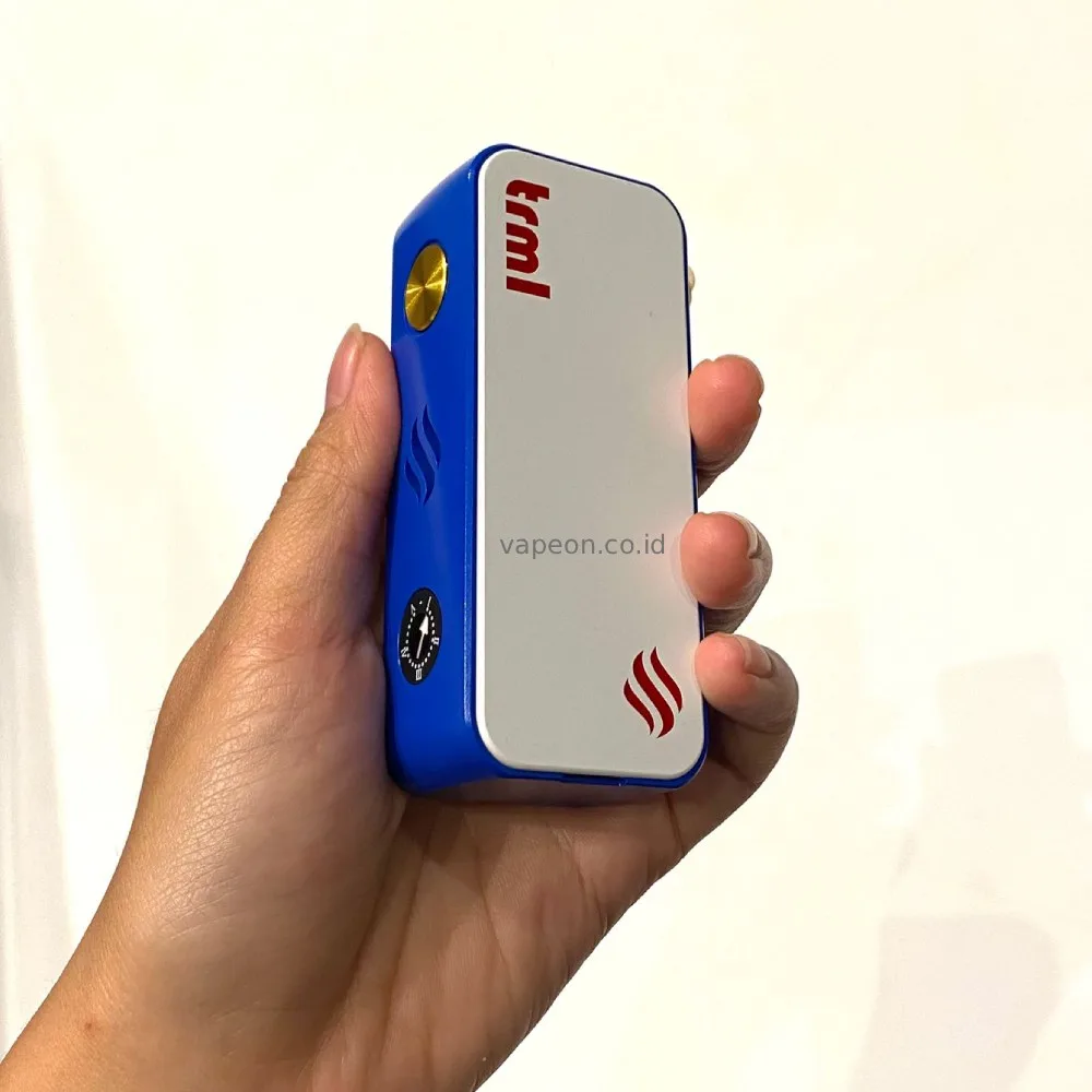 Mod ini memakai frame biru matte dengan panel depan putih bersih, dihiasi logo “trml” berwarna merah yang kontras dan membuat tampilannya semakin mencolok.